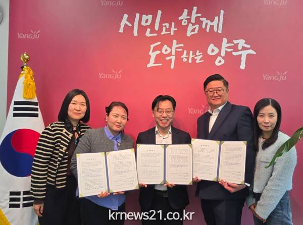 ▲ 사진=양주시청양주시 옥정2동(동장 이윤규)은 2일 복지 사각지대 해소를 위해 주식회사 라온아띠(대표 강세구, 서민우)와 부재가구 가정방문 지원을 위한 업무협약(MOU)을 체결했다.