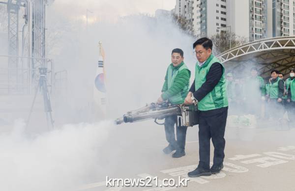 이후 박강수 마포구청장과 대원들은 직접 방역 장비를 시연하며 전염병 예방과 주민 안전을 위한 굳은 의지를 다졌다.