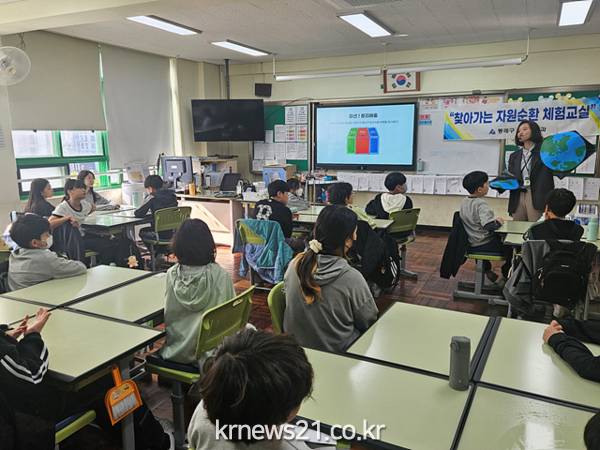 ▲  사진=부산동래구부산 동래구(구청장 장준용)는 지난 10일 달북초등학교 학생 88명을 대상으로 「찾아가는 자원순환 체험 교실」을 운영했다고 밝혔다.