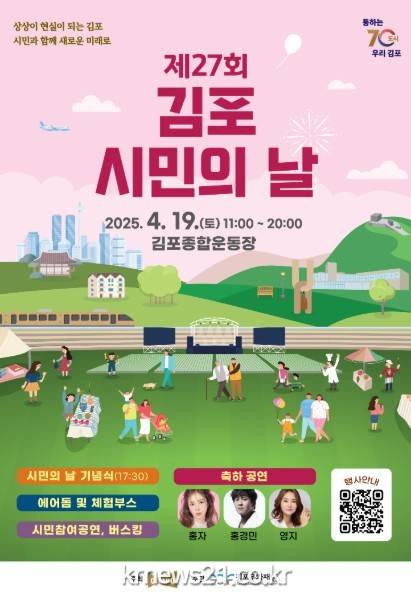 ▲ 사진=김포시김포시(시장 김병수)가 제27회 김포시민의 날 기념행사를 오는 4월 19일(토) 김포종합운동장에서 개최한다. 이번 행사는 ‘서로를 응원하고 함께하는 우리 김포’라는 공동체 정신을 되새기며, 시민이 주인공이 되어 즐기고 소통하는 하루 종일 축제로 펼쳐진다. 오전 11시부터 오후 8시까지 진행되며, 시민 누구나 자유롭게 참여할 수 있다.