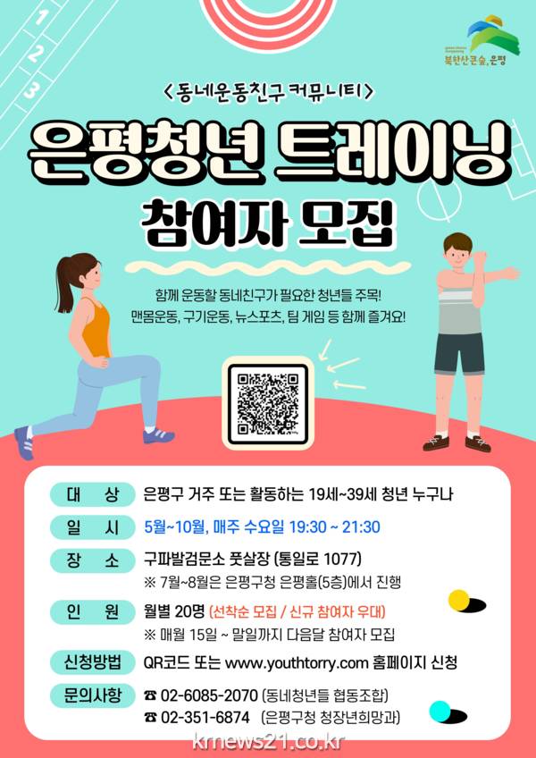 서울 은평구(구청장 김미경)는 청년들의 건강증진과 지역 관계망 형성을 위한 ‘은평청년 트레이닝’에 참여할 청년을 모집한다고 밝혔다.