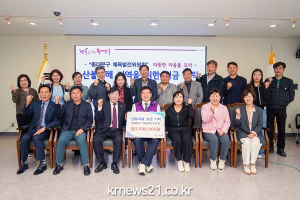 서울 동대문구(구청장 이필형)는 4월 17일 동대문구 체육발전위원회(회장 최영도)에서 영남권 산불 피해 복구를 위한 성금 300만 원을 기탁했다고 밝혔다.