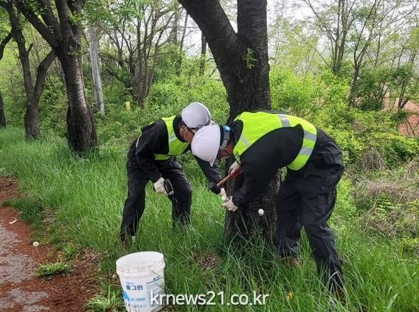 ▲  사진=여주시여주시는 관광 원년의 해를 맞이하여 여주시를 방문하는 관광객들에게 쾌적한 가로환경을 제공하고자 매년 피해가 많은 가로수 구간에 대하여 수간 주사를 실행할 예정이다.