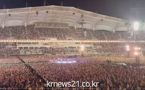 특히 이번 공연에는 걸그룹 트와이스와 BTS 진이 콜드플레이와 함께 무대를 꾸몄다.