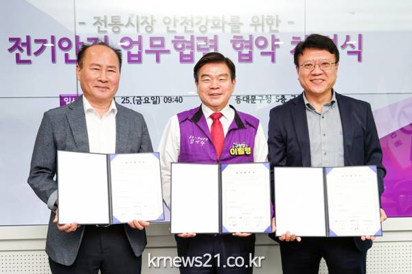 이필형 구청장은 “전통시장은 우리 지역경제의 중요한 기반이자 많은 주민이 찾는 생활 공간인 만큼, 안전한 시장 환경 조성은 곧 주민의 생명과 재산을 지키는 일”이라며 “이번 협약을 계기로 전기화재 예방 모델이 전국적으로 확산될 수 있도록 지원을 아끼지 않겠다.”라고 밝혔다.