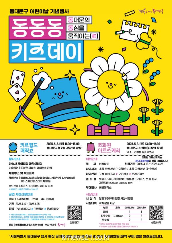▲ 사진=동대문구청서울 동대문구(구청장 이필형)는 제103회 어린이날을 맞아 오는 5월 3일(토) ‘동대문의 동심을 움직이는(動), 동동동 키즈데이’ 행사를 개최한다.