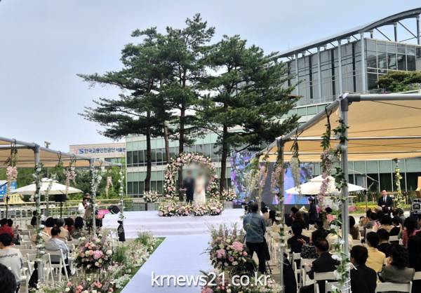 ▲  사진=마포구청서울 마포구(구청장 박강수)는 지난 4월 27일, 마포구민을 위한 특별 이벤트로 구청사 2층 햇빛광장에서 ‘야외 결혼식’을 열었다.