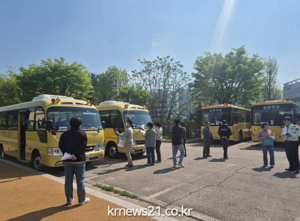 의정부교육지원청(교육장 원순자)은 4월 28일(월) 의정부시청, 의정부경찰서, 한국교통안전공단 경기북부본부 자동차 안전단속팀과 함께 관내 유치원, 학교, 학원에서 운영하는 어린이통학버스 총 11대에 대해 합동점검을 실시했다.
