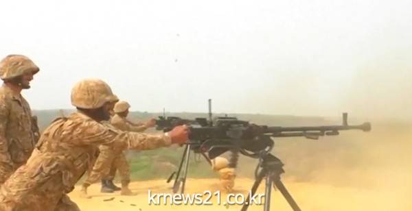 파키스탄군이 현지 시각 어제 대규모 군사 훈련 장면을 공개했다.