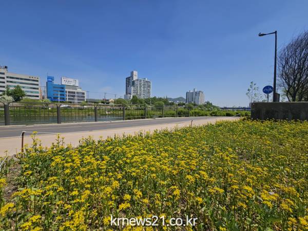 유채꽃은 지난 3월 중랑교 하부에 씨앗을 파종한 것으로, 최근 활짝 펴 주민들에게 아름다운 봄 풍경을 선사하고 있다. 이번 유채꽃은 5월 초까지 감상할 수 있다.