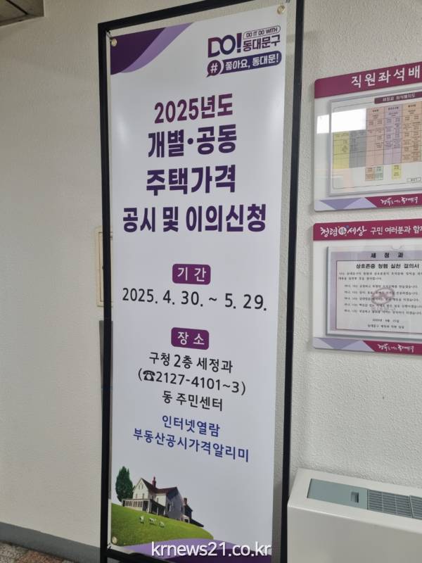 서울 동대문구(구청장 이필형)는 2025년 개별주택(단독주택, 다가구주택 등)에 대한 가격을 산정하고, 한국부동산원의 검증을 거쳐 이를 공시했다. 이에 따라 구는 5월 29일(목)까지 이의신청 기간을 운영한다.