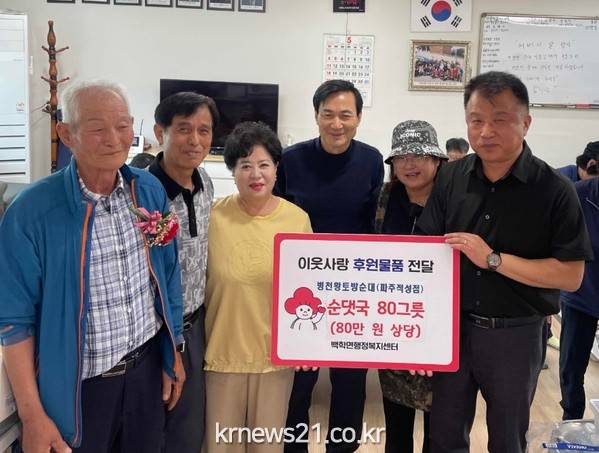 병천황토방순대 파주적성점(대표 구미례)가 지난 8일 백학면 두일3리 경로당에서 어르신들께 순댓국 80그릇을 대접했다.