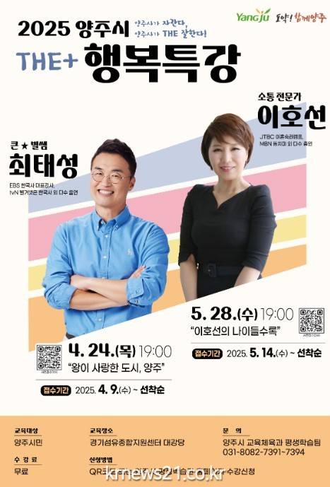 기자 자세한 내용은 양주시 평생학습관 누리집을 확인하거나 교육체육과 평생학습팀(☎ 031-8082-7391~7394)으로 문의하면 된다.