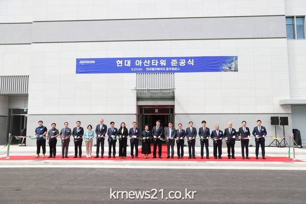 현대엘리베이터㈜는 21일 충주제5일반산업단지 본사 부지 내 엘리베이터 테스트타워를 완공하고, 이를 ‘현대 아산타워’로 명명하며 준공식을 개최했다.이번 타워는 현대그룹 창업주 故 정주영 명예회장의 호(號)인 ‘아산(峨山)’을 따서 명명되었다.이날 행사에는 현대그룹 현정은 회장, 조재천 대표이사 등 회사 관계자 및 김영환 충북도지사, 조길형 충주시장, 이종배 국회의원, 이양섭 충청북도의회의장, 김낙우 충주시의회의장 등이 참석해 타워의 준공을 축하하며, 지역 발전과 동반 성장을 위한 적극적인 지원을 약속했다.‘현대 아산타워’는 상층부 곤돌라를 포함해 높이 250m에 달하며, 엘리베이터의 각종 성능을 체계적으로 시험하고 연구할 수 있는 최첨단 R&D 연구센터를 겸비하고 있다.이 타워는 충주를 대표하는 첨단산업도시로서 국내외 기술력의 중심지로 자리 잡을 것으로 기대된다.현대엘리베이터는 현대그룹 계열의 기업으로 대한민국 승강기 시장에서 점유율 1위를 자랑한다.2022년 2월, 38년간의 이천 시대를 정리하고 충주로 본사를 이전한 현대엘리베이터는 엘리베이터, 에스컬레이터, 무빙워크 등 승강기 제조와 유지보수 사업을 통해 충주를 대표하는 기업으로 성장하고 있다.이날 행사에 참석한 조길형 충주시장은 축사를 통해 “충주시의 미래첨단산업의 핵심 동력이 될 현대엘리베이터 아산타워 준공을 축하한다”라며, “중부내륙신산업도시 충주를 넘어 세계적인 기업으로 성장할 수 있도록 시에서도 관심과 지원을 아끼지 않겠다”고 말했다.