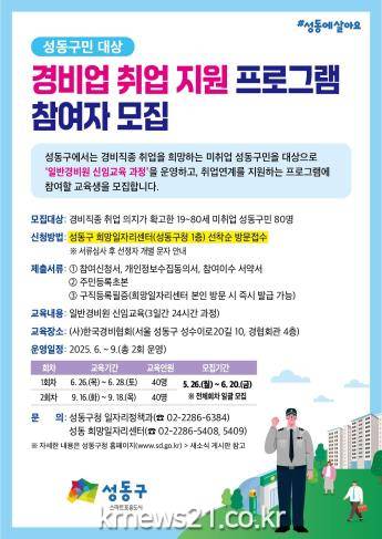 ▲  사진=성동구청서울 성동구(구청장 정원오)가 경비업종에 취업을 희망하는 구직자를 위한 ‘경비업 취업 지원 프로그램’을 운영한다.