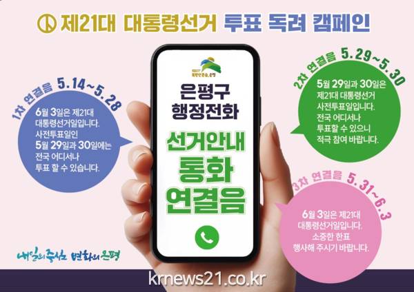 ▲  사진=은평구청서울 은평구(구청장 김미경)는 제21대 대통령 선거를 맞아 유권자의 소중한 한 표 행사를 독려하기 위한 온오프라인 전방위 홍보를 이어간다고 밝혔다.