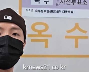 그래서일까요 제이홉 씨는 사전투표 첫날인 어제 투표소를 찾아 인증샷도 남겼다.