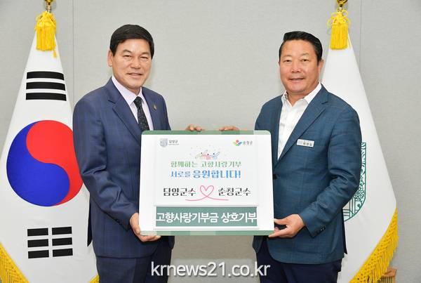 정철원 담양군수는 “이번 상호 기부가 고향사랑기부제의 취지를 널리 알리고, 지역 간 상생의 가치를 되새기는 계기가 되길 바란다”며 “앞으로도 순창군과 함께 생활권을 공유하는 이웃 지자체로서, 실질적인 협력 모델을 만들어가겠다”라고 말했다.