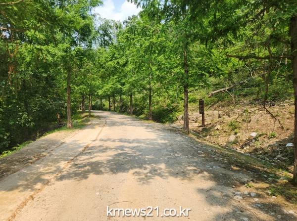 처인구 왕산리 산93번지 일원의 산길은 2016년에 조성된 메타세쿼이아길과 이듬해 조림된 편백숲이 어우러진 공간이다.