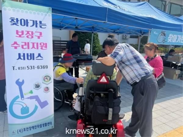 ▲ 사진=포천시포천장애인자립생활센터(센터장 송기태)는 지난 18일 포천시청 잔디광장에서 ‘찾아가는 보조기기 점검 및 세척 서비스’를 진행했다.