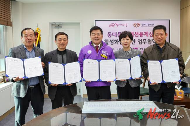 서울 동대문구(구청장 이필형)는 21일 관내 3개 봉제협회와 경희대학교(서울) RISE사업단이 참여한 가운데 패션봉제산업 활성화를 위한 두 번째 업무협약(MOU)을 체결했다고 밝혔다. 이번 협약식에는 이필형 동대문구청장, 지은림 서울학무부총장 겸 RISE사업단장, 장병채 DDM패션봉제산업연합회장, 이순기 동대문구의류봉제산업연합회장, 송...