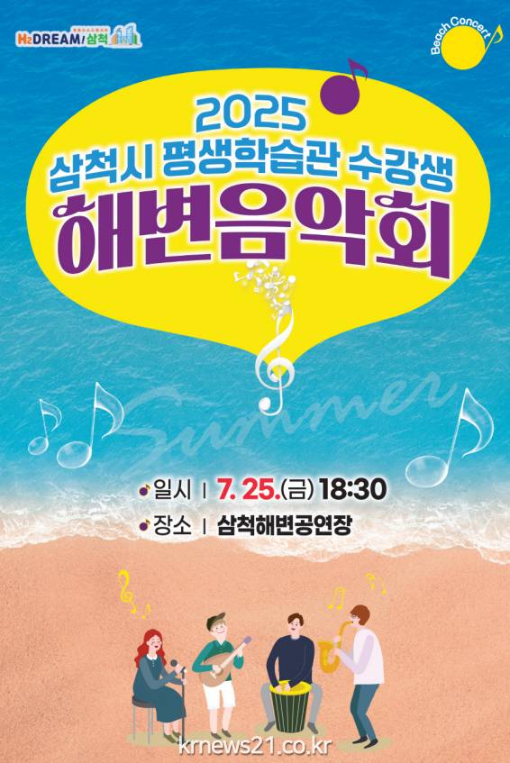▲ 사진=삼척시□ 삼척시 평생학습관 200여명의 수강생이 만드는 한 여름밤 바다 위에 울리는 음악축제 “2025년 삼척시 평생학습관 수강생 해변음악회”를 오는 7월 25일(금) 저녁 6시30분 삼척해변 공연장에서 개최한다.