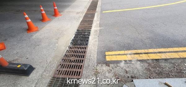 이에 수지구는 즉시 현장을 점검해 배수로 덮개의 고정 불량과 콘크리트 구조물 간 간격 벌어짐이 소음의 원인임을 확인한 뒤 보수작업에 나섰다.