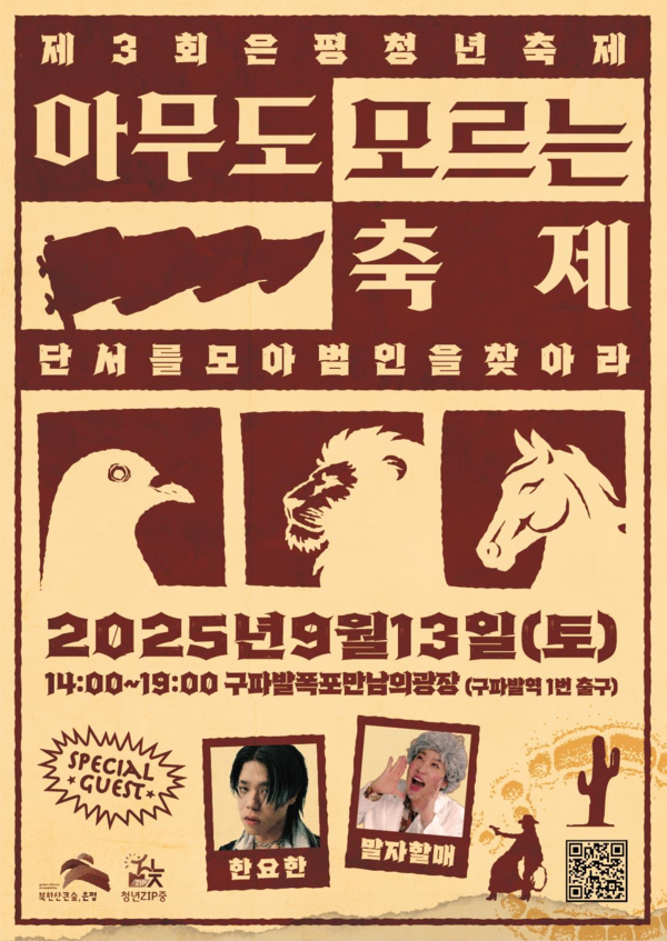 지난 4월 구성된 은평청년축제기획단은 축제의 주제와 콘셉트 기획부터 홍보 운영까지 주도적으로 참여했다. 주요 프로그램인 ‘영꾸꾸의 비니를 찾아라!’는 청년들이 서부의 보안관이 돼 은평구의 청년캐릭터 영꾸꾸의 비니를 훔쳐간 범인을 찾는 추리 게임으로, 축제의 몰입도를 높이고 색다른 재미를 극대화할 예정이다.