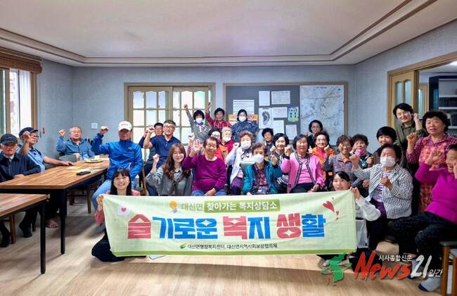 한편 대신면 행정복지센터는 주민 밀착형 복지 실현을 위해 매월 1회 마을 경로당을 찾아가 복지상담소 슬복생을 운영하고 있으며 앞으로도 지역 주민들의 삶의 질 향상과 복지 사각지대 해소를 위해 다양한 맞춤형 복지서비스를 제속적으로 제공할 계획이다.
