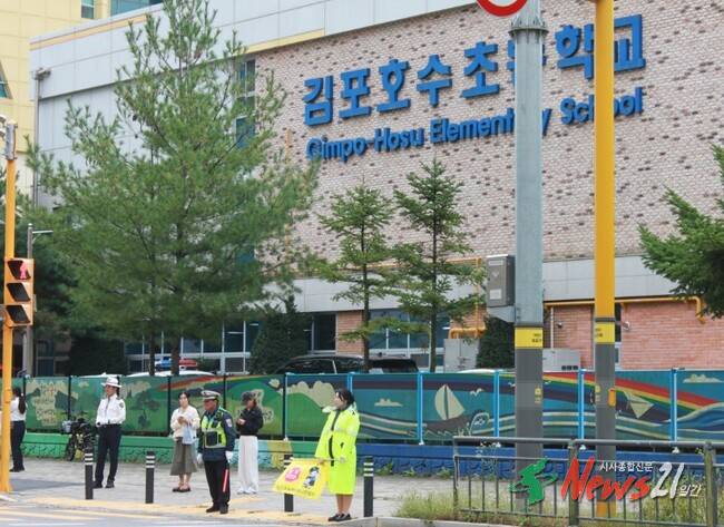 이날 캠페인은 김포호수초등학교와 어린이 교통사고 예방을 위해 “여기는 스쿨존, 급한 마음은 잠시 멈춤.”이라는 홍보문구와 함께 통행하는 차량의 서행을 유도하고 주·정차 금지 등 어린이들의 안전을 위한 교통지도를 실시했다.