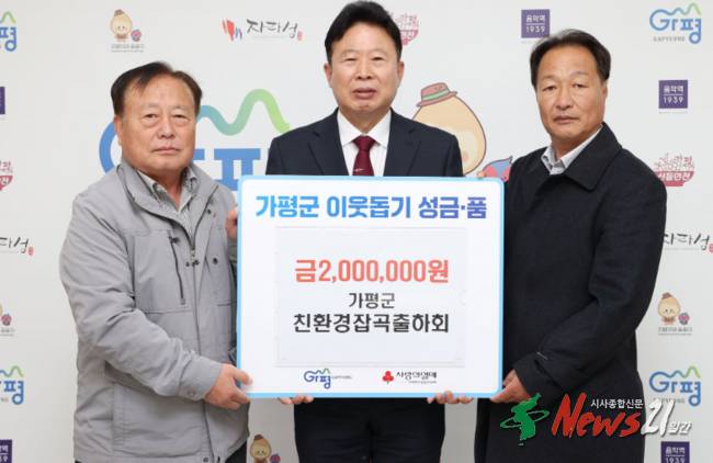 윤복영 가평군친환경잡곡출하회장은 “가평의 건강한 환경에서 자란 농산물을 사랑해 주신 주민 여러분께 감사드리며, 그 마음을 지역사회에 다시 나누고 싶었다”며 “작은 정성이지만 어려움을 겪는 이웃들에게 힘이 되기를 바란다”고 전했다.