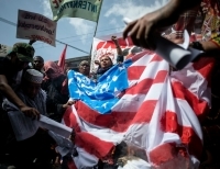 자국에서 미군의 즉각적인 철수를 요구하는 필리핀 원주민들이 시위를 하고 있다.