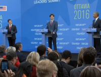 버락 오바마 미국 대통령이 NAFTA 회담을 마치고 캐나다, 멕시코와 함께 세계 주식 시장 안정을 위해 긴밀히 협력할 것임을 밝혔다. 미국 캐나다 멕시코 북미자유무역협정(NAFTA) 3개국 회담, 일명 '세 친구 회담 (three amigos summit)'이 캐나다의 수도 오타와에서 열린 가운데 마지막 회담 후, 오바마 대통령은 "미국, 캐나다 그리고 멕시코는 함께...