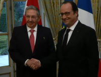 라울 카스트로 쿠바 국가평의회 의장은 월요일 (2월 1)에 프랑스에서 그의 공식 방문의 일환으로 프랑스 대통령 프랑수아 올랑드를 만났다.카스트로는 엘리제궁에서의 3일간의 공식 행사 첫번째날 거대한 환영을 받았다.카스트로의 형인 피델 카스트로 전 국가평의회 의장은 1995년 3월 프랑스에 이틀간 머물며 프랑수아 미테랑 당시 프랑스 ...
