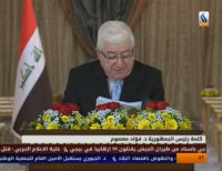 Source FormatSDAudioNATURAL WITH ARABIC SPEECHLocationsBAGHDAD, IRAQSourceIRAQIYA TVRevision3TopicFundamental Rights/Civil Liberties,Government/PoliticsSource News FeedsCore NewsIDtag:reuters.com,2015:newsml_WD2XQI91J:3이라크의 대통령 푸아드 마숨은 헌법개정 통과를 위한 지지 연설을 하고 있다.