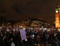 수천명의 영국인이 런던 의회광장에서 20일(현지시간) 도널드 트럼프 미국 대통령의 영국 국빈 방문에 항의하는 시위를 벌였다. 시위자들은 의회광장에서 "트럼프 반대", "덤프 트럼프"(Dump Trump·트럼프 버리기) 등을 외치거나 이같은 구호가 쓰여진 플래카드를 들었다. 이번 국빈 방문은 엘리자베스 2세 여왕이 주최하는 행사에 참석하는 ...