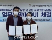 글로벌사이버대학교(총장 이승헌) 상담심리학과는 21일 그림책미술심리연구소 리틀마누(대표 신지원)와 그림책미술심리상담사 자격증 운영 및 인턴 프로그램 운영을 위한 업무협약을 체결했다고 밝혔다.글로벌사이버대학교 서울학습관 세미나실에서 열린 협약식에는 상담심리학과 김재훈 학과장, 리틀마누 신지원 대표가 참여했다.이번 ...