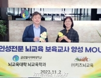 글로벌사이버대학교(총장 이승헌)가 2023학년도 인성 전문 뇌교육 보육교사 양성에 나선다.글로벌사이버대학교는 2일 글로벌사이버대학교 천안 본교에서 뇌교육대학 소속 뇌교육학과가 영유아 뇌교육 전문 기업 키즈뇌교육과 상호 간 산학 협력 MOU를 체결했다고 3일 밝혔다. 협약식에는 뇌교육학과 장래혁 학과장과 키즈뇌교육 임윤희 이...