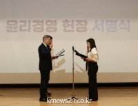 선박해양플랜트연구소(소장 홍기용, 이하 KRISO)는 4일 대전 본소에서 홍기용 소장, 노동조합위원장을 비롯한 연구소 전 직원이 참석한 가운데 ‘윤리경영 선포식’을 개최했다고 밝혔다.이날 행사는 홍기용 소장과 노동조합위원장을 비롯한 연구소 전 직원이 참석해 부패방지와 자체 정화 노력 등 청렴윤리경영에 대한 지지와 약속을 대내...