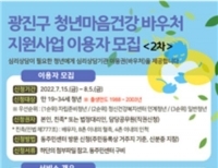광진구(구청장 김경호)가 심리상담이 필요한 청년에게 심리상담기관 이용권을 제공하는 ‘광진구 청년마음건강 바우처 지원사업’ 이용자를 모집한다.대상은 만 19~34세 광진구 거주 청년이며, 자립준비청년을 1순위로 한다. 2순위는 정신건강복지센터 연계 청년이며, 3순위는 일반청년이다.신청은 8월 5일까지 본인 또는 친족 및 법정대리인...