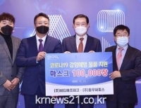 코로나19 장기화로 어려움을 겪고 있는 광주시민을 위로하는 나눔과 연대의 행렬이 잇따르고 있다.광주광역시는 11일 오후 시청 접견실에서 ㈜비티에프테크, ㈜올밀크F&B와 코로나19 위기극복을 위한 기부물품 기탁식을 가졌다.㈜비티에프테크는 광주시민과 자원봉사자들의 코로나19 감염예방을 위해 마스크 10만장을 (사)광주광역시자원봉...