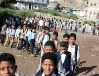 임시 학교로 등교하는 예멘 아이들