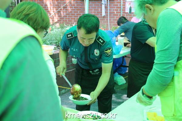 인천서부경찰서 직원들은 사회적 약자,소외계층 자장면 무료봉사를 하고 있다.