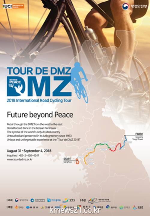‘뚜르 드 디엠지(Tour de DMZ) 2018 국제자전거대회’가 8월 31일부터 9월 4일까지 5일간 강화도 접경지역과 비무장지대(DMZ) 일원에서 열린다.