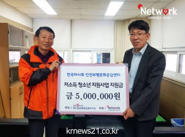 사회복지법인 네트워크는 한국마사회 인천부평문화공감센터로부터 저소득 청소년을 위한 사업으로 총 500만원의 후원금을 지원받았으며, 저소득 청소년들을 위한 학습물품 전달에 사용할 계획이다.