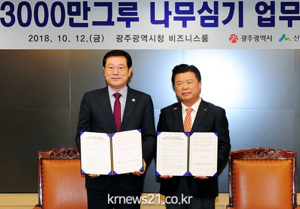 이번 업무협약은 광주시가 기후변화에 따른 도시열섬 완화와 미세먼지 저감을 위한 근본대책으로 추진하는 3000만그루 나무심기 사업을 성공적으로 추진하기 위해 마련됐다.