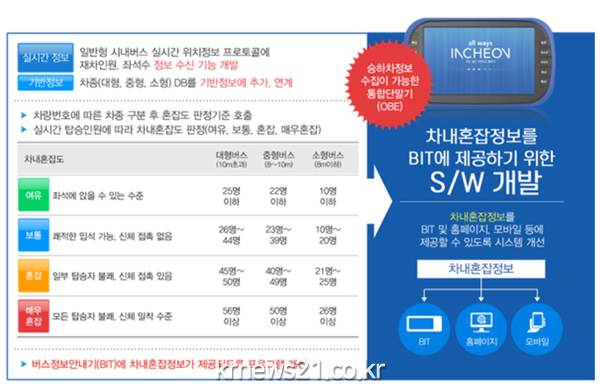부가사업으로는 버스 내 실시간 탑승객 수를 기반으로 버스 내 혼잡정보제공과 기점 ․ 회차점 부근 버스정보 오류 개선, 市 버스정보안내 홈페이지 개편 및 노후 버스정보안내기 시인성개선(LED모듈적용) 등이 있다.