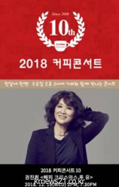 10주년을 맞는 커피콘서트의 올해 마지막 무대가 12월 19일 인천문화예술회관 소공연장에서 열린다. 이번 시간에는 다양한 장르를 넘나들며 독창적인 음악세계를 펼쳐나가는 싱어송라이터이자 깊은 울림의 보컬리스트 권진원을 만날 수 있다.