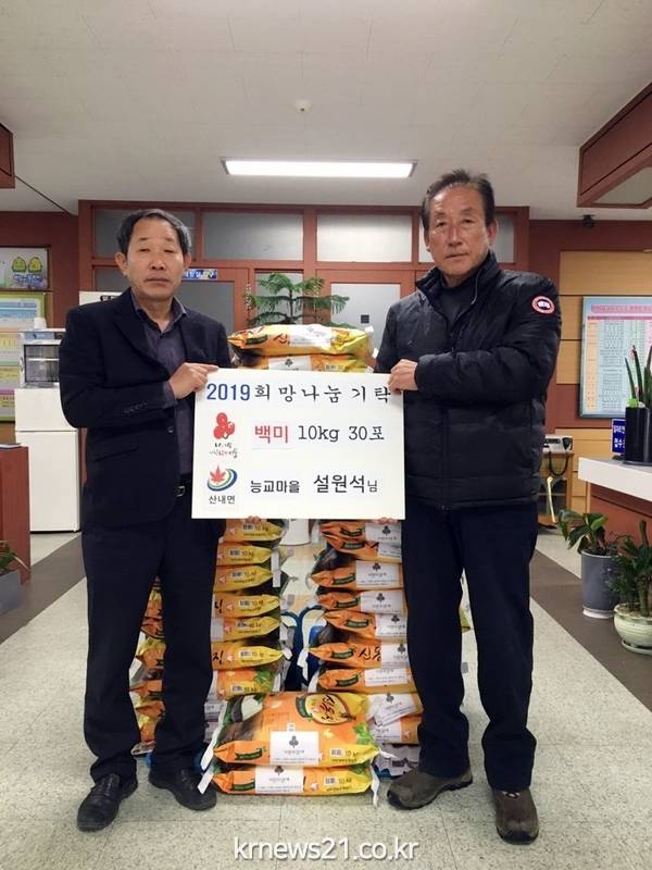 이번 쌀 기탁은 평소 어르신을 공경하고 어려운 이웃을 걱정해온 설 씨가 사랑 나눔 봉사 일환으로 연말연시 불우한 이웃들이 따뜻한 겨울을 보내는데 조금이나마 보탬이 되고자 추진됐다.