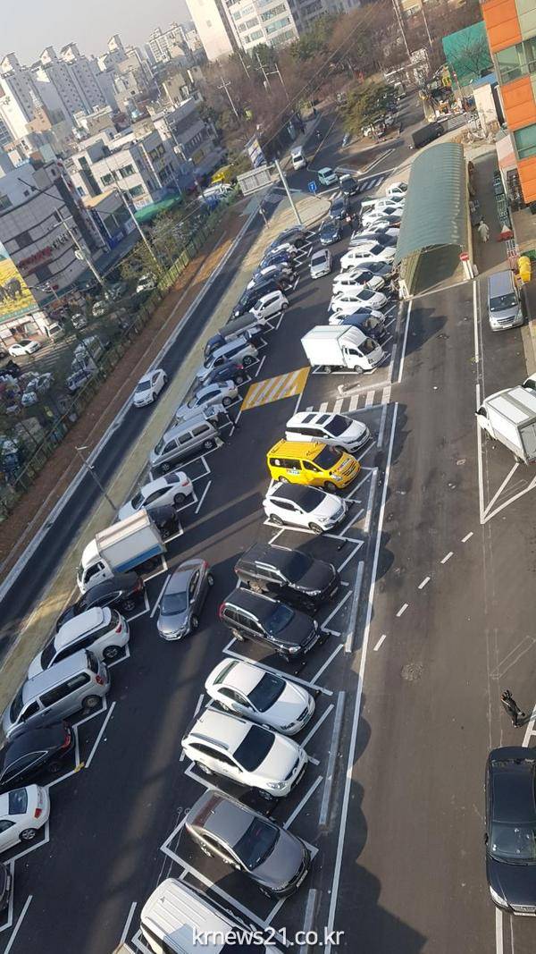 특히, 일상적으로 이루어지는 후문 진입로 주변에 무단주차 후 농산물을 구매하고 상품을 상․하차하는 행위가 진입하는 많은 차량들의 교통을 방해하여 도매시장 내․외를 극심한 정체로 이어지게 함은 물론 크고 작은 접촉사고가 끊임없이 발생하게 하는 원인으로 지적되어 왔다.